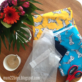 Nu havde jeg klippet til en blå og en gul t-shirt, men drengene ville jo gerne have ens t-shirt ligesom sidst.
